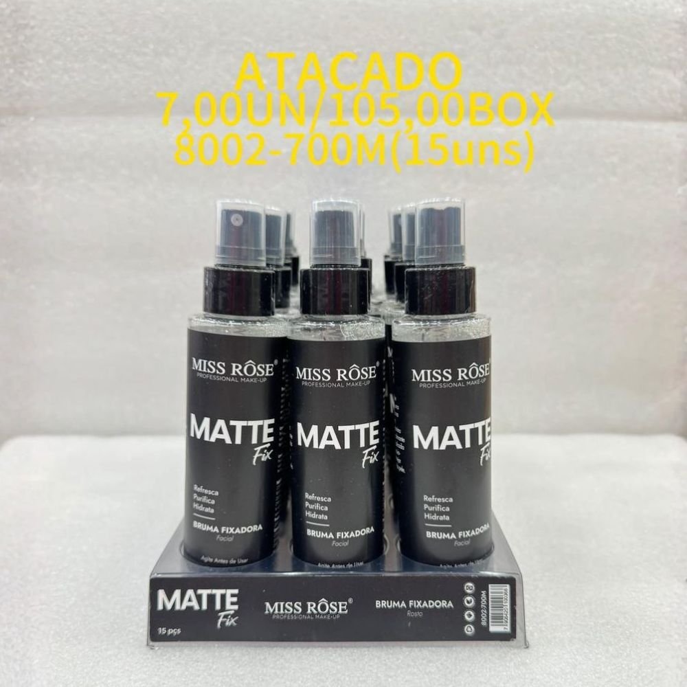 Garanta uma maquiagem impecável e de longa duração com a Bruma Fixadora Matte Fix Miss Rôse!