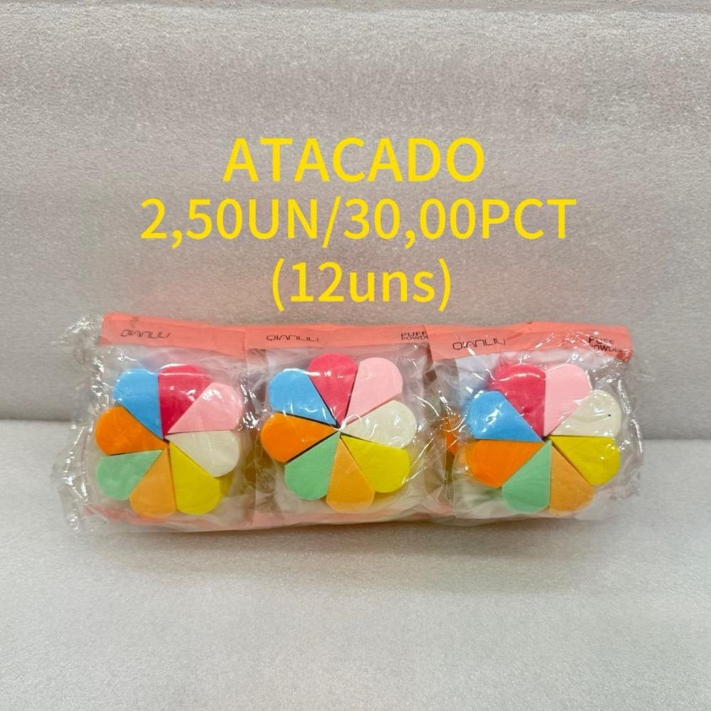 As 12 unidades vêm em cores vibrantes e formatos variados, perfeitas para diferentes técnicas e áreas do rosto. Um item essencial para maquiadores, lojas de cosméticos e quem ama cuidar da beleza com qualidade e estilo.