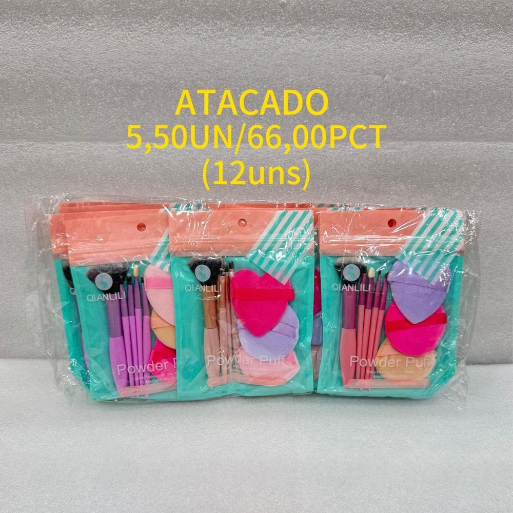 Kit de Pincéis e Esponjas de Maquiagem Powder Puff Qianlili